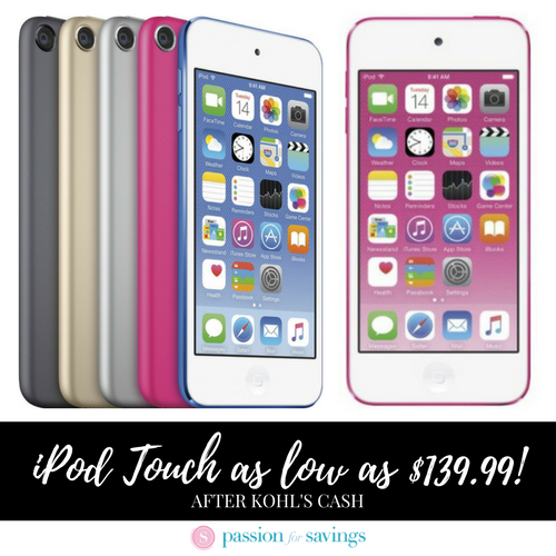 Kohl’s has the BEST PRICE on an iPod Touch I’m seeing anywhere. They have the 16GB iPod Touch for only $199.99 + You’ll earn $60 in Kohl’s Cash when you spend $200 so just add something small into your order! You cannot use coupon codes on the iPod at Kohls.