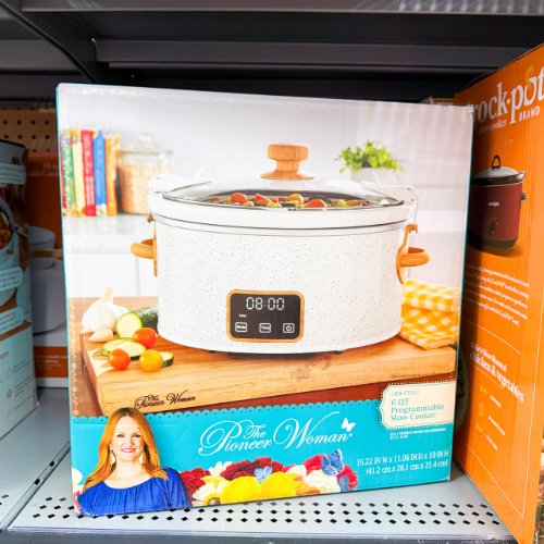 The 6 Qt Slow Cooker also has the speckle pattern paired with the wood grain accents. That combo is so pretty and pairs well with any kitchen decor. Get it for just $41.97
