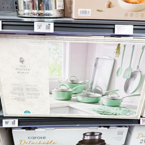 The green color of this 17 pc Ceramic Cookware Set also has such a nostalgic vibe! Only $99.97!