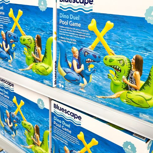 My kids went NUTS over this. It’s basically a safer form of chicken like we used to play. Buy this Bluescape Blue & Green Dino Fight Inflatable Pool Game Set for $39.98. It’s actually so fun – worth every penny!