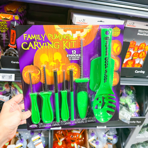 Check out this awesome deal over at Walmart! You’ll want to grab this Green Family Carving Kit by Pumpkin Pro It comes with 4 carving tools, a Super Goop Scoop, 2 markers, and 12 stencils for only $5.90 when purchased online!