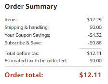 One of the things I’m doing more of this year is Shopping Online! I LOVE Amazon Subscribe and Save and I’m going to try to hit my 5 items per month each month so that I can take advantage of the 15% Subscribe and Save Discount each month!