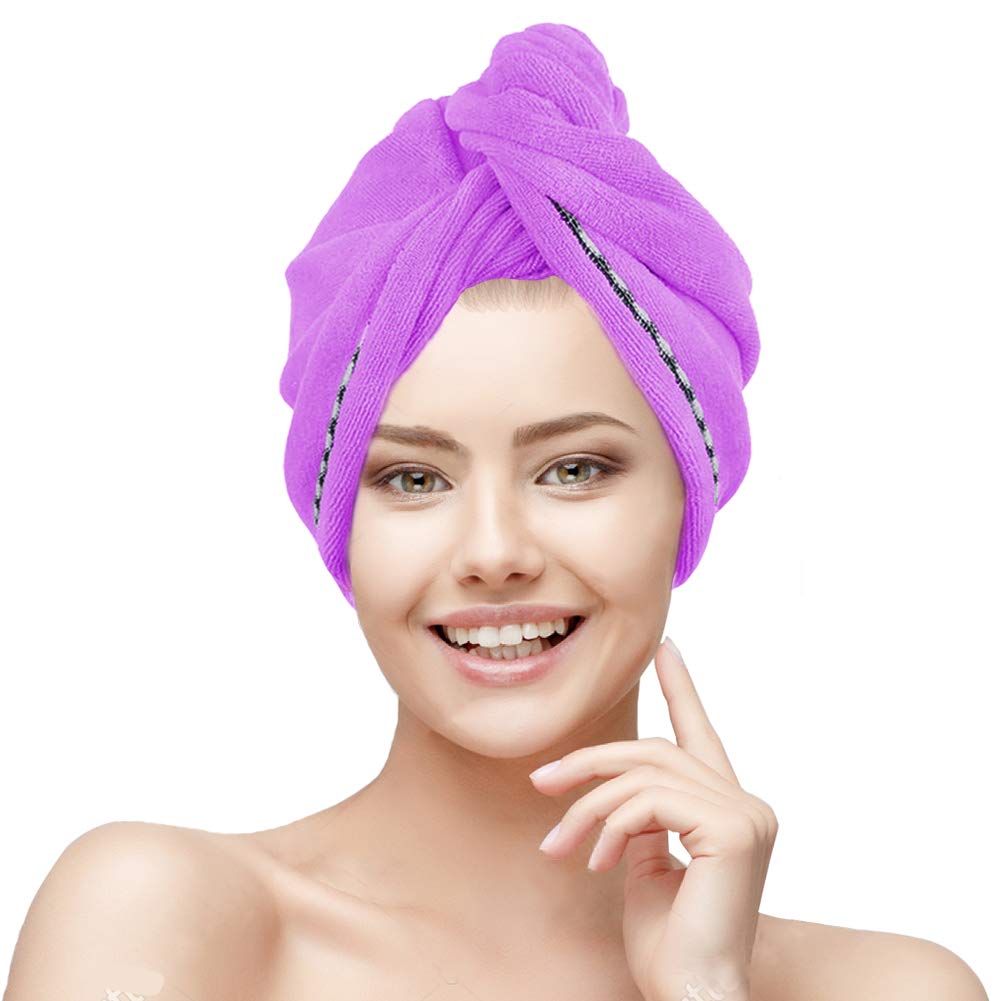 This fast drying turban towel is made from coral fleece microfiber. It’s very absorbent, and it will stay soft even after washing and drying. It’s simple to use. Just put your head upside down, wrap your hair up in the towel and button it closed. It will stay in place and quickly dry your hair as you get things done around the house or just relax.