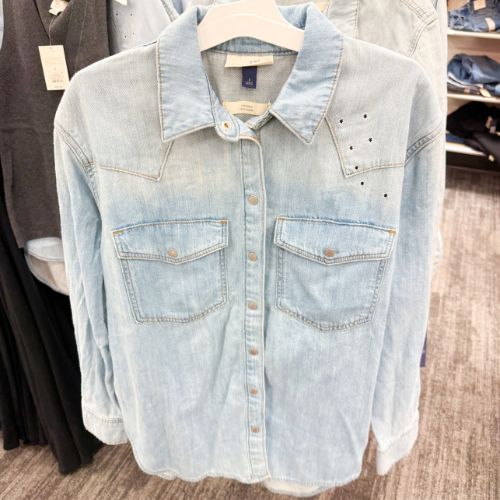 Are you even ready for Fall if you don’t have a good Denim Shirt hanging in your closet?! This one has such a great wash and so many cute details on it. I love it for $35. Sizes XS-4X available online.