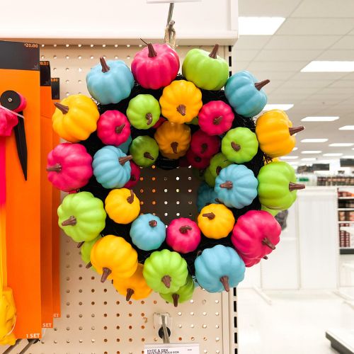 Not ready to give up the bright shades? Mix vibrant colors with fall with this Night of the Vivid Dead Pumpkin Halloween Wreath! It’s only $20 too!