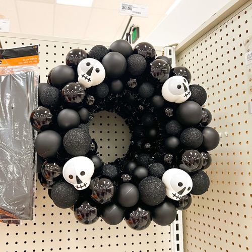 Here is a fun spooky option! This will look so sleek on your door. Buy the Festival of Frights Skull Black and White Shatterproof Halloween Wreath for ONLY $20!