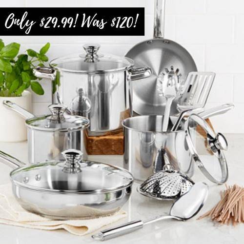 Tools of the Trade 13-PC Stainless Steel Cookware Set $29.99! Was $120!