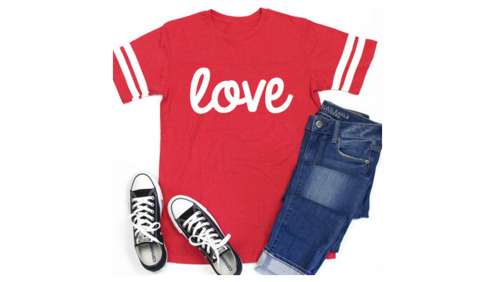 There are two styles available – Love and XOXO. And, you can get either design in three colors – red, charcoal and heather gray. I’m loving the red tee because red is definitely the color of Valentine’s Day. Make sure you choose your normal size if you want a looser fit, and size down if you want a more fitted look.