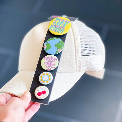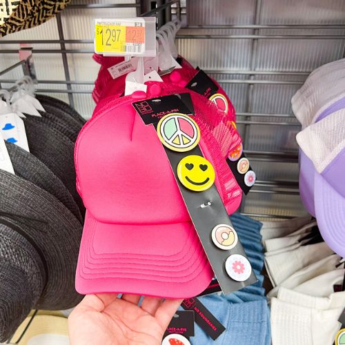 I am loving this Walmart hat! It comes with the hat and 5 different various sized buttons so that you can customize it how you choose! You can use the pins on the hat, or wear the hat as is and stick the buttons on a backpack, shirt, or bag! This makes for such a fun gift at an incredible price. Take a look for yourself…