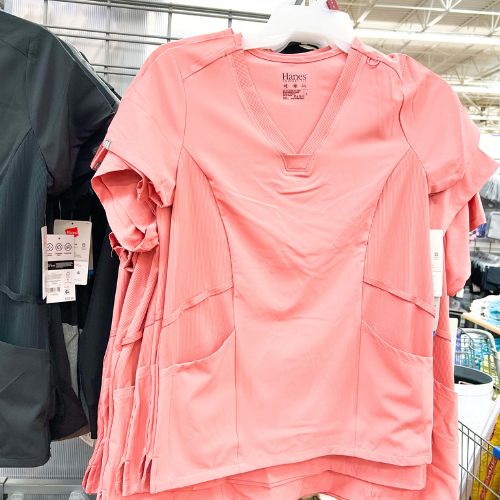 There are a ton of great scrubs out there, but they come at a high price tag! I was in Walmart the other day and spotted these Hane’s one that looked and felt just like big name-brand ones. They have huge pockets, adorable slimming styles, and the fabric is SO comfortable. Check them out…
