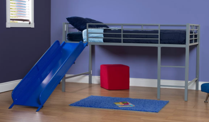 Yes, that is a SLIDE out of a loft bed! I think I need it :) This Harper Twin Low Loft Bed is on sale for just $154.99, or $139.99 after the coupon for 10% off!