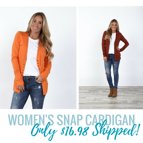We have a great deal on cardigans today! You can grab an assortment of colors of these Women’s Ribbed Snap Button Cardigans for only $16.98 Shipped!
