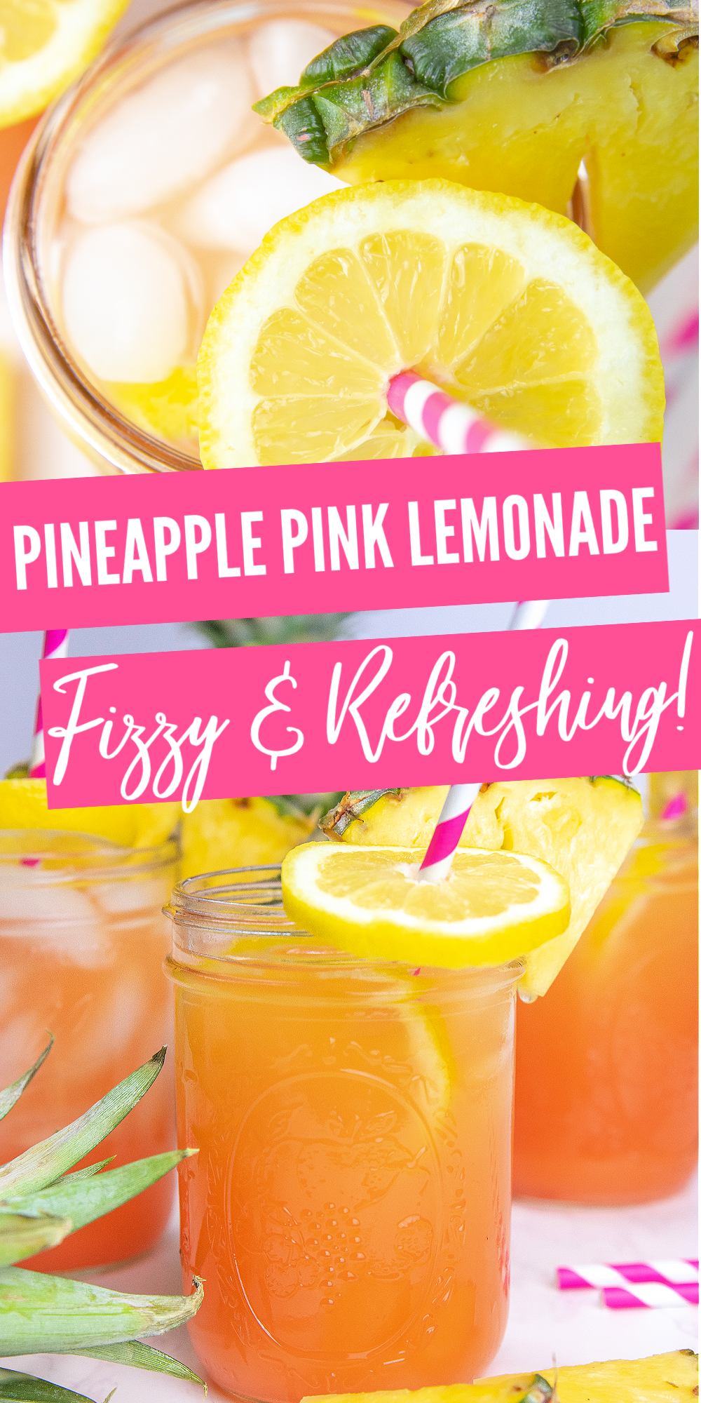 This Pineapple Pink Lemonade is fizzy and delicious when pineapple is combined with the pink lemonade! It's the perfect summer punch for any holiday of everyday!