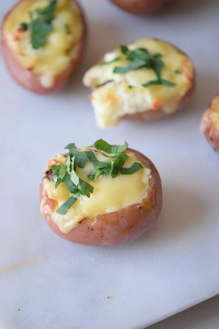 I made these for a Super Bowl party and they lasted less than 5 minutes! I made another small potato recipe to go with them…for a little diversity….potato salad bites…same concept…different insides! I followed your recipe exactly and they were great…and easy! The other recipe I boiled the potatoes instead of roasted them and noticed that the skins did not get wrinkly, so I think the next time I make these I will boil them rather than roast them. This is the perfect appetizer…freeze them, add stuff to them and easy to make! Best of all…everyone loved them and begged for the recipe! Well done!