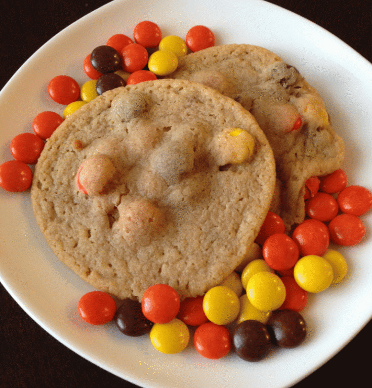 You could also replace the Reese’s Pieces with Chocolate Chips! I’ve done that too, and it’s a yummy Peanut Butter Chocolate Chip Cookie that everyone will love! That’s a great way to make these with items you probably have on hand, even if you don’t already have Reese’s Pieces!