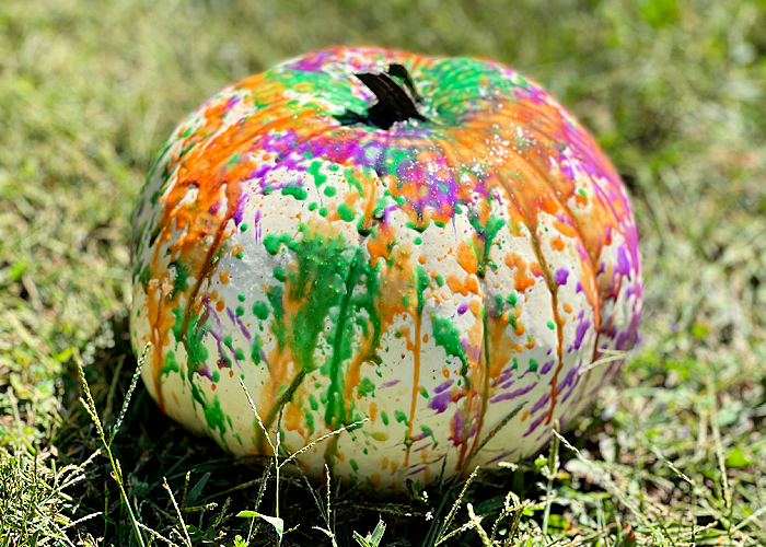 Lastly, let your kids squirt one color at a time until the pumpkin is painted!