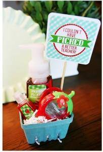 Now is the time to use all of the cute apple scented items you have picked up on sale all year. Put them together in a cute little basket or just a gift bag, with a little note that says “I couldn’t have PICKED a better teacher”. Something that will make any teacher smile.
