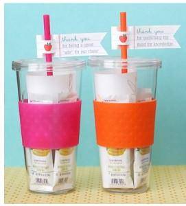 I think I saw these on clearance at Kohl’s not too long ago. You can find cute cups like this at the end of the summer and grab a few for teacher’s holiday gifts. Fill the inside with Crystal Light packets and add a little note that says “Thanks for QUENCHING my thirst for knowledge”. How adorable!