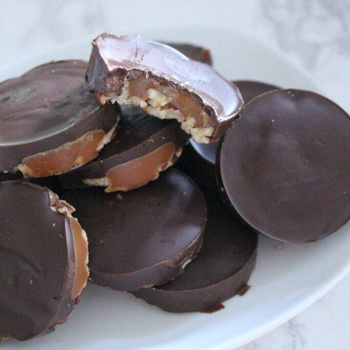 I hope you enjoy this recipe as much as we do! My kids love to help me push the caramels down and add the chocolate! I love that these are so simple to make and don’t take a lot of time. Super easy to whip up on a whim and transport to a holiday party!